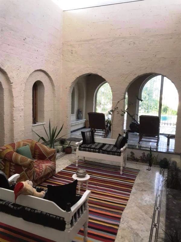 La villa est du plein pied et elle se compose d’un grand salon, une salle à manger, un joli hall orné d’arcades, une suite parentale, deux chambres à coucher, une très belle cuisine moderne et bien équipée deux salles de bain et une salle d’eau.
