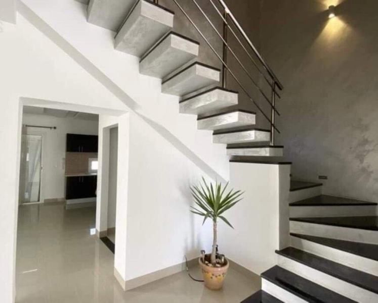 La villa est érigée sur deux niveaux, elle comporte au rez de chaussée un grand salon- salle à manger donnant sur la piscine, une chambre à coucher, une salle d’invitées et une cuisine moderne bien équipée.