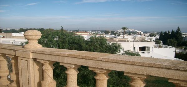 A Elkantaoui_Narjess 2 une luxueuse villa style américain avec piscine entourée par un très beau jardin bien entretenu, non meublée, composée au rez de chaussée d'un grand séjour,suite parentale(chambre à coucher,salle de bain,cuisine),grand salon avec terrasse vue jardin,cuisine avec terrasse,un deuxième séjour accès jardin et piscine ,à l'étage ,deux chambres à coucher,salle de bain,bureau,grande suite parentale(dressing,jacuzzi) avec spacieuse terrasse vue panoramique,garage pour deux voitures,un puit,la villa est muni de chauffage centrale et climatisation.loyer négociable