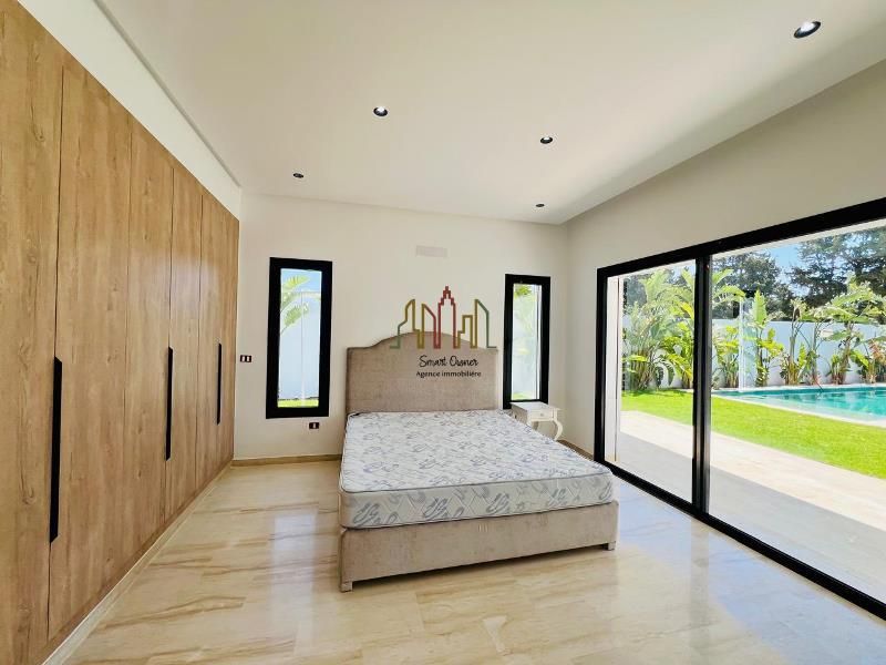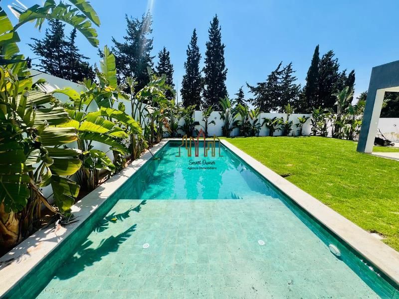 A vendre chez l’agence SMART OWNER immobilière Hammamet, une magnifique villa moderne de plain pieds construite avec des matériaux raffinés, bois noble, sanitaire de qualité, situé dans un quartier bien sécurisé à Hammamet Sud zone Sidi Hammed.