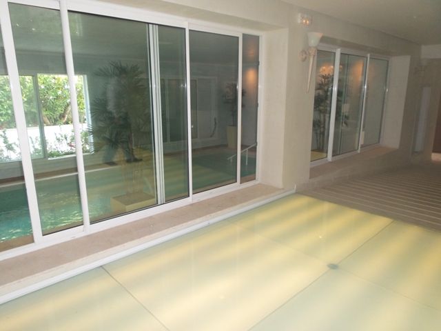 La villa est équipée d'un ascenseur, des rangements partout, du chauffage central, de la climatisation central, un garage, une belle pelouse et une piscine débordante.