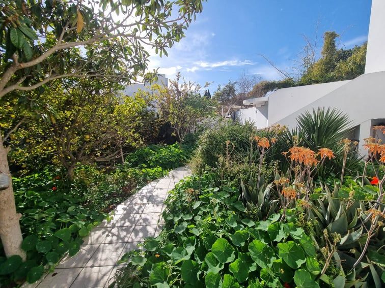 Un joli extérieur devant la villa, qui l'enserre dont vous bénéficiez d'une belle piscine débordante avec jacuzzi, un puits, un jardin planté et gazonnée, une belle terrasse abritée qui donne sur la piscine, un coin barbecue et deux garages.