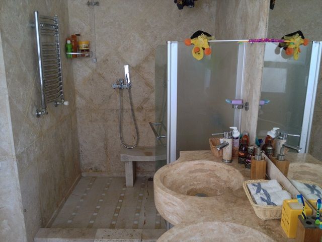 La villa comporte une suite parentale, quatre chambres à coucher, un grand salon qui donne sur la piscine, une cuisine bien équipée, un sauna, des climatiseurs partout, chauffage central, système d'alarme, une douche extérieure, un abri de voiture et une grande piscine adaptée aux familles avec jeunes enfants.