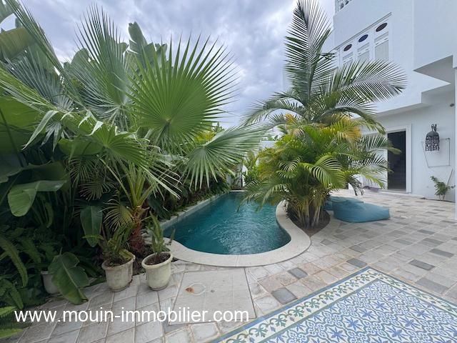 A louer à l’année une demeure de charme d’une architecture moderne contemporaine, idéalement placée à Hammamet – Zone Corniche à 300m de la plage et d’Hôtel Sindbed.