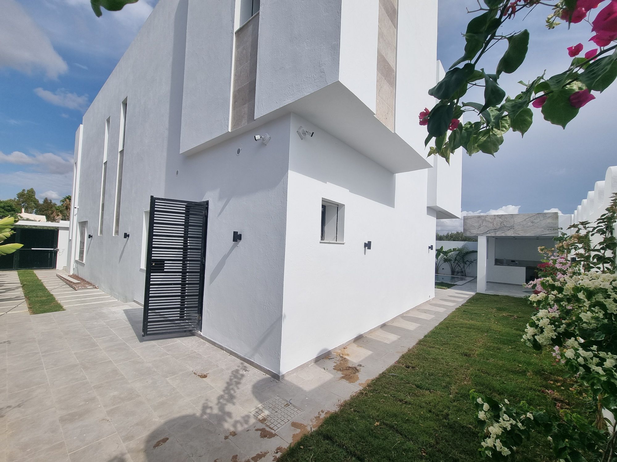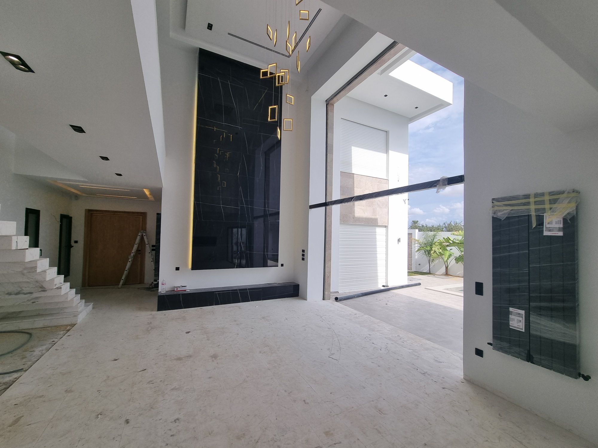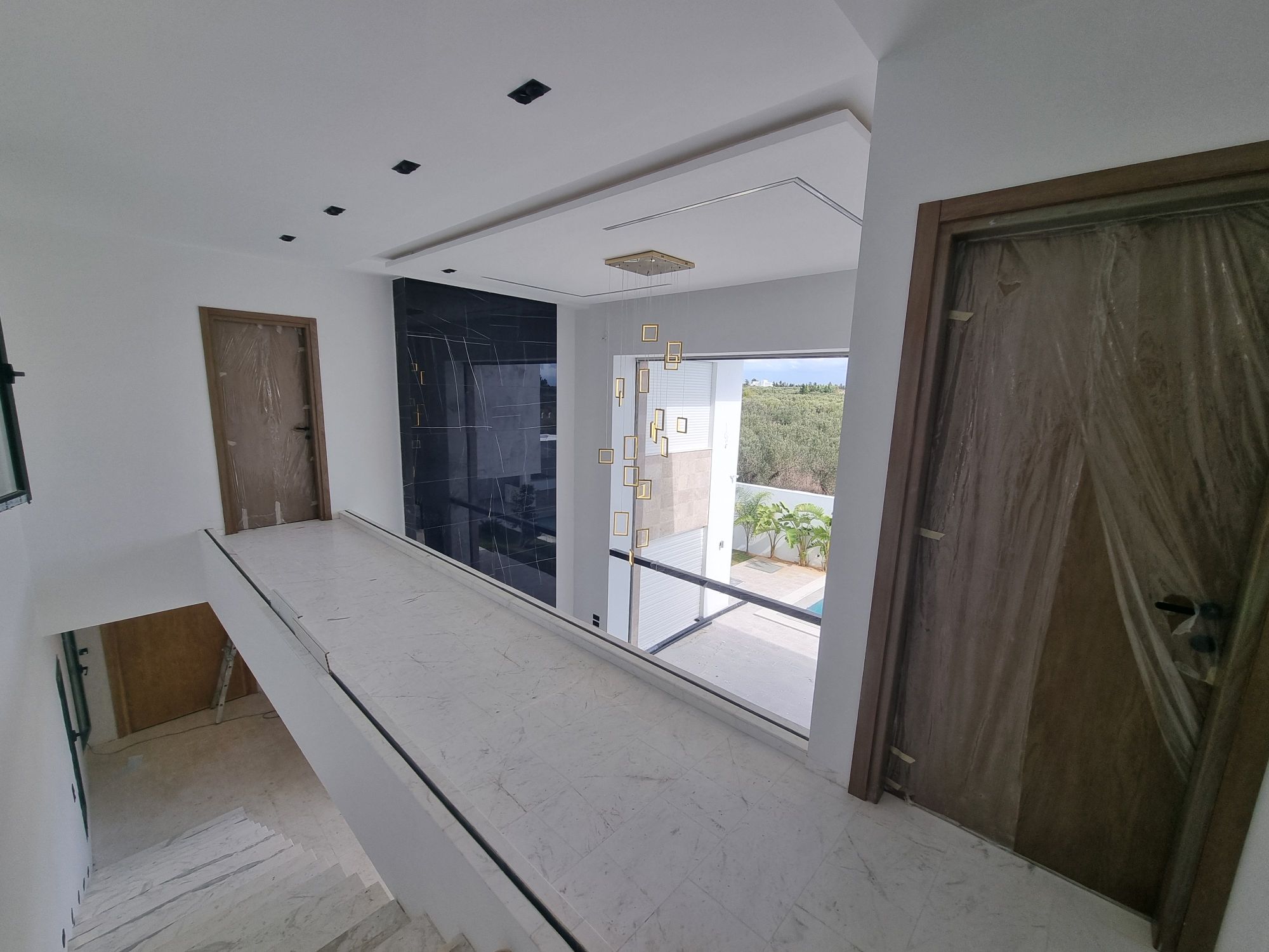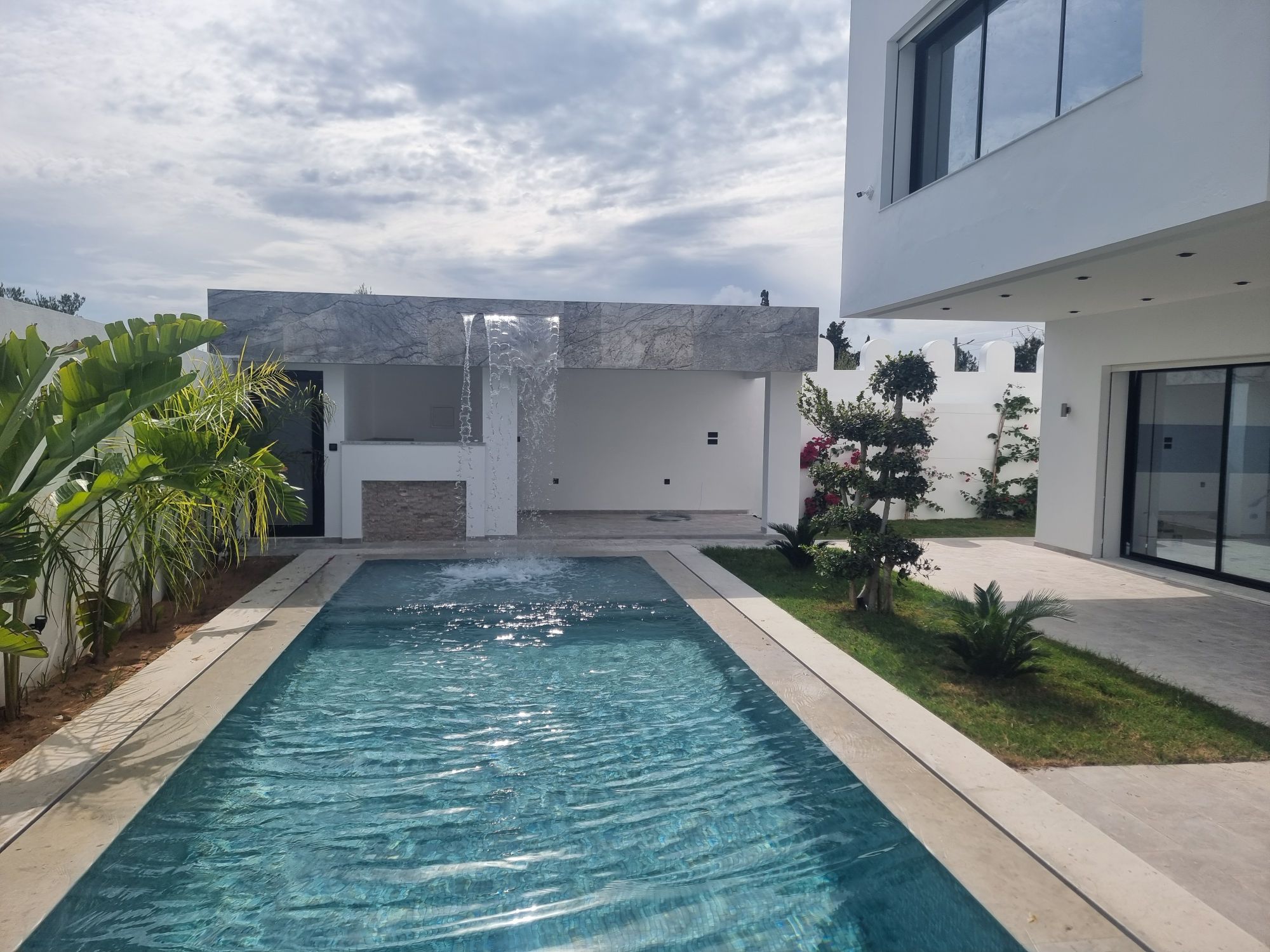 A vendre une villa de luxe avec piscine débordement de très haut standing construite avec des matériaux noble situé à Hammamet sud à 10 min de la mer.