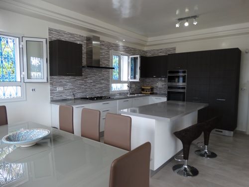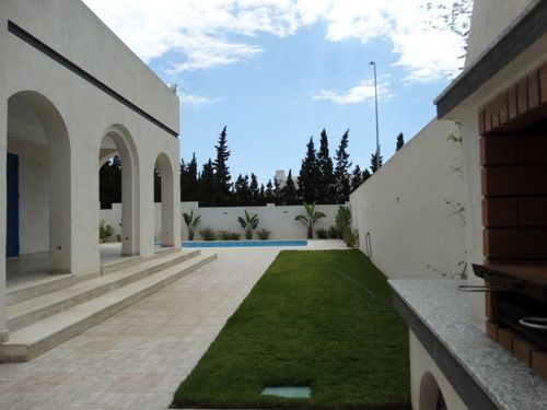 A vendre chez l'agence TPS immobiliére Hammamet, une belle demeure de plain pied avec un style arabesque moderne, bien située à Yasmine Hammamet dans un quartier calme et sécurisé, elle est composé d'un spacieux salon, une cuisine américaine moderne et bien installée, une suite parentale aménagée d’un grand dressing et une salle de bain, deux chambres à coucher avec des dressings et une salle de bain commune. L’entre sol compte un cellier, une chambre de service avec une salle de bain, une loge gardien, un local technique et une place parking. La propriété est équipée de chauffage central et de climatisation et elle dispose d’une belle piscine entourée d’un jardin gazonné et d’une terrasse bien aménagée.
