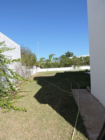 A louer pour les vacances une belle villa située dans un quartier résidentiel à Hammamet Sud-Jinan Hammamet. Elle se compose au rez-de-chaussée d'un salon-salle à manger donnant sur un beau jardin gazonné, une cuisine équipée, une chambre et une salle d'eau.