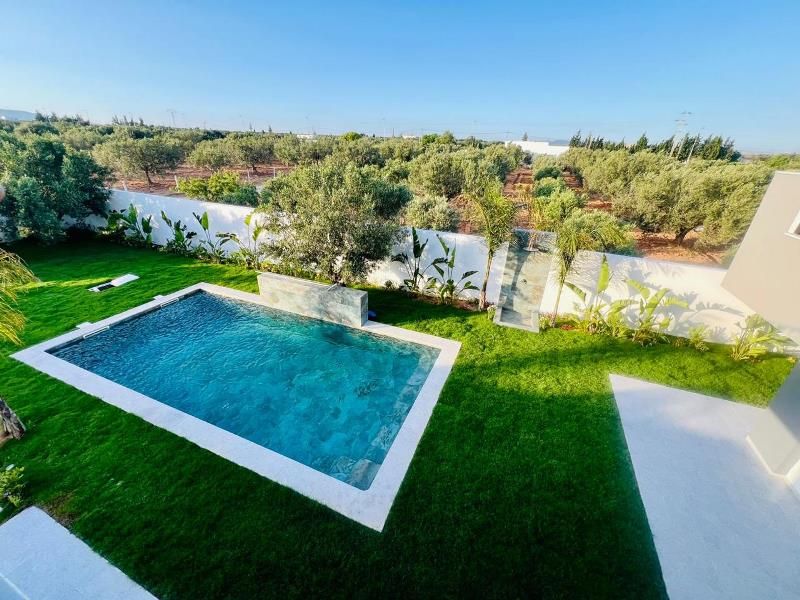 A vendre chez l’agence SMART OWNER immobilière Hammamet, une luxueuse villa de très haut standing nouvellement construite sur un terrain de 700 m², située dans un quartier résidentiel calme et bien sécurisé à Hammamet Sud zone El Bessbessia.