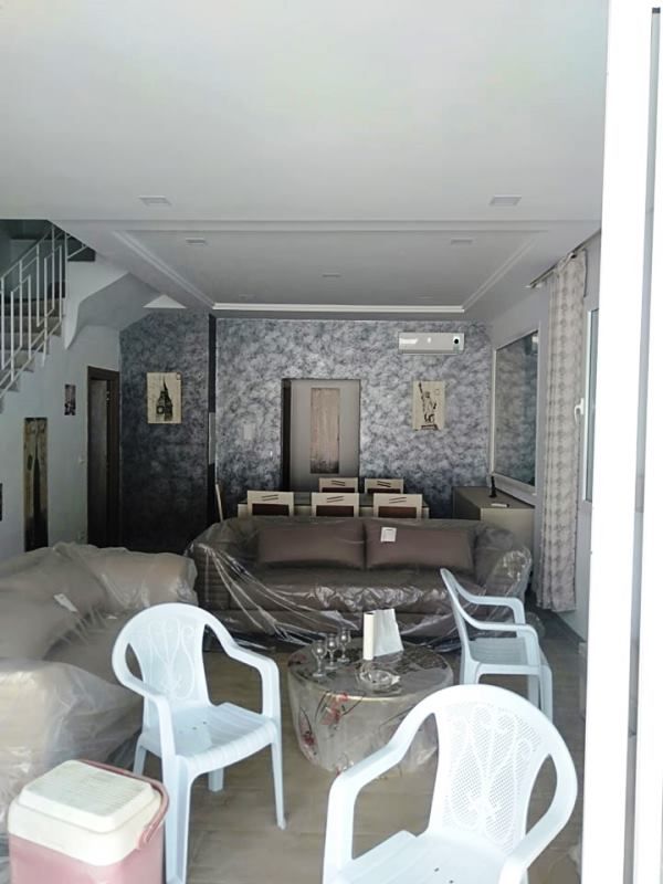 La villa est érigée sur deux niveaux, elle comporte au rez de chaussée, un grand salon qui donne sur la piscine, une chambre à coucher avec dressing, une cuisine équipée bien aménagée avec un séchoir et une salle d’eau d’invités.