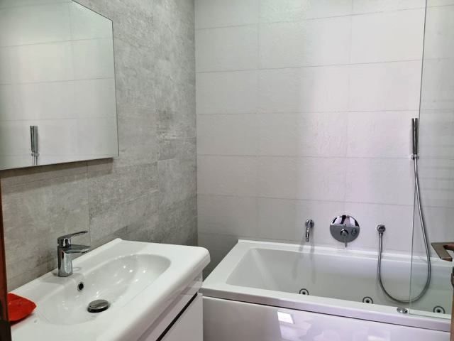 Finalement à l’extérieure, la villa possède une belle piscine débordante, un jardin gazonné, une douche et un parking pour voiture avec un portail électrique.