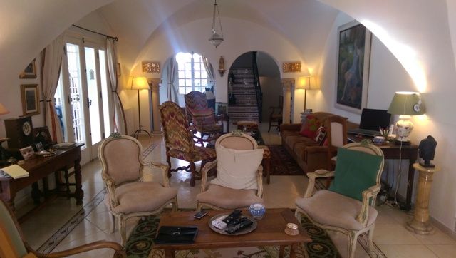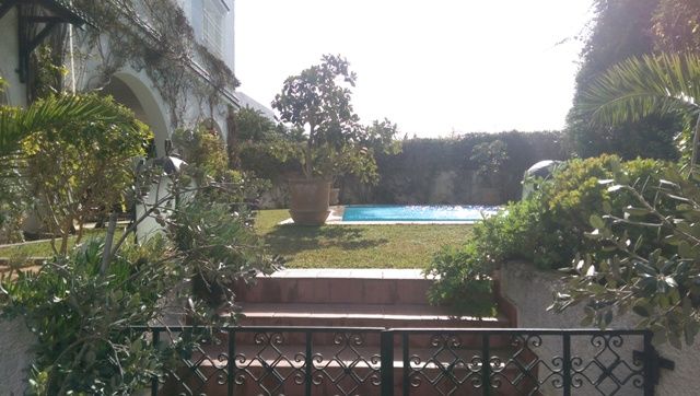 A chez l'agence TPS Immobiliere Hammamet, une somptueuse demeure érigée sur trois niveaux, bâtie au style arabo-contemporain avec des voûtes croisées et des arcades. Elle est située à Hammamet, dans un quartier verdoyant, calme et serein à 1 km environ de la plage. La villa offre un spacieux salon contenant un agréable coin de détente face à la cheminé et une salle à manger, une chambre à coucher, une salle d’eau et une cuisine bien aménagée. Au premier étage, on trouve trois suites avec des placards et salles de bains et au deuxième une grande suite aménagée en une bibliothèque avec un coin bar et une salle d’eau. Au sous sol, on trouve une grande pièce, une spacieuse cuisine et un débarras. La villa est équipée de chauffage central et de climatisation et elle dispose d’une superbe piscine entourée d’un jardin gazonné avec arrosage automatique, d'une loge gardien et d’un garage pour deux voitures.