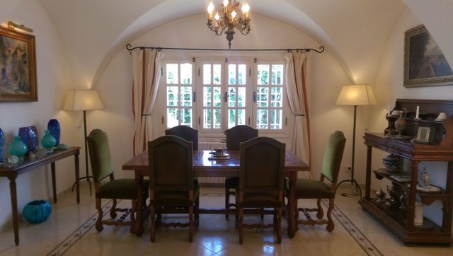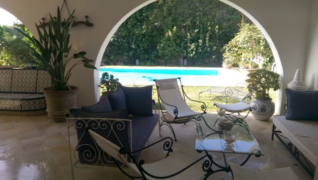 A chez l'agence TPS Immobiliere Hammamet, une somptueuse demeure érigée sur trois niveaux, bâtie au style arabo-contemporain avec des voûtes croisées et des arcades. Elle est située à Hammamet, dans un quartier verdoyant, calme et serein à 1 km environ de la plage. La villa offre un spacieux salon contenant un agréable coin de détente face à la cheminé et une salle à manger, une chambre à coucher, une salle d’eau et une cuisine bien aménagée. Au premier étage, on trouve trois suites avec des placards et salles de bains et au deuxième une grande suite aménagée en une bibliothèque avec un coin bar et une salle d’eau. Au sous sol, on trouve une grande pièce, une spacieuse cuisine et un débarras. La villa est équipée de chauffage central et de climatisation et elle dispose d’une superbe piscine entourée d’un jardin gazonné avec arrosage automatique, d'une loge gardien et d’un garage pour deux voitures.