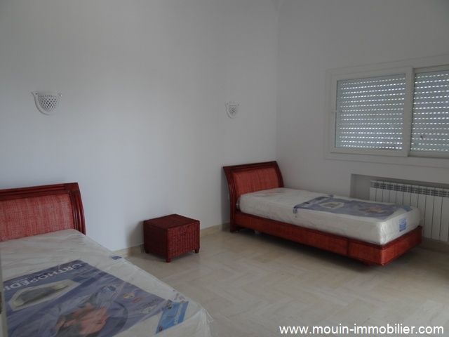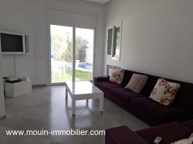 A louer pour des courtes durées une villa érigée sur deux niveaux, située dans un quartier résidentiel à Hammamet Sud.