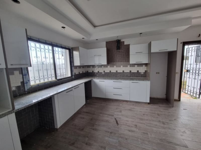 La villa est érigée sur deux niveaux, elle est composée au rez de chaussée d'un salon-salle à manger donnant sur la terrasse et le jardin, une pièce de séjour ainsi qu'une belle cuisine moderne et une salle d'eau pour les invitées.
