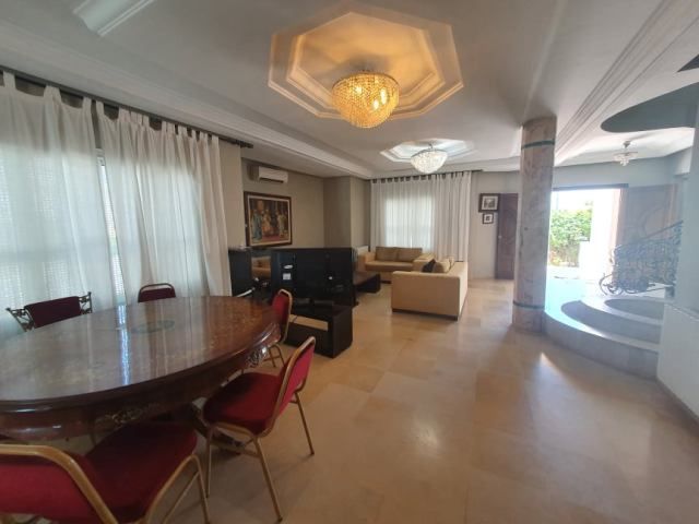 Au rez de chaussée, un salons, séjour, une salle à manger, donnant sur le jardin et la piscine avec une merveilleuse terrasse bien aménagée avec des voutes croisés, une cuisine bien équipée et une salle d'eau pour les invitées.