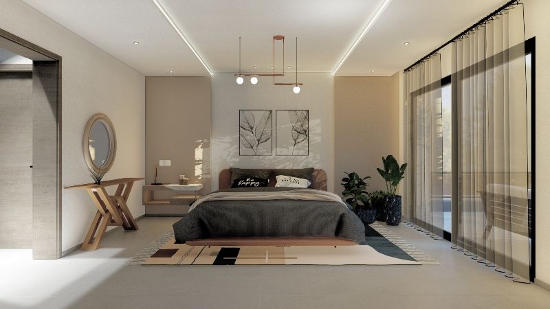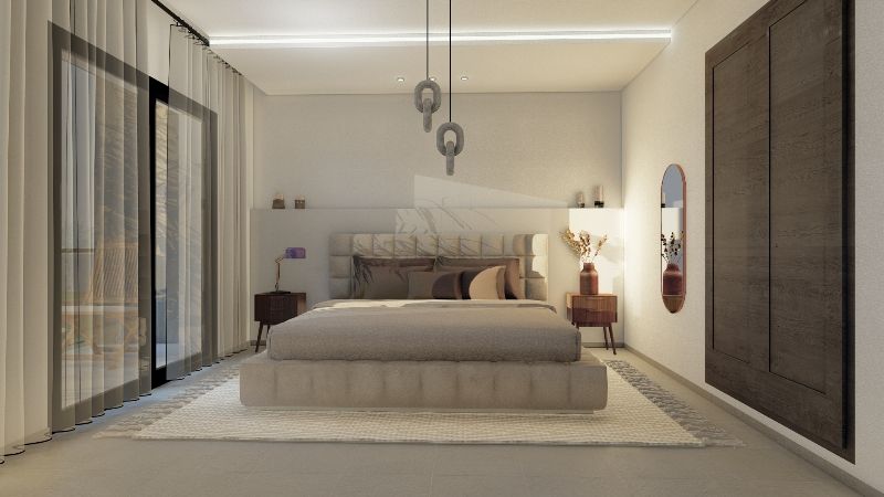 Le deuxième étage abrite une grande suite avec dressing, salle de douche, et une grande terrasse offrant une vue agréable.