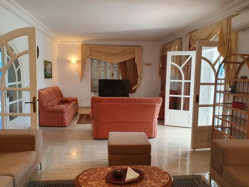 A louer à l’année chez l'agence TPS Immobilière Hammamet, une charmante villa avec piscine, érigée sur deux niveaux et bien située à Hammamet Nord proche de la plage et à proximité des hôtels Aziza et Radisson Bleu. Elle compte au rez de chaussée un spacieux salon – salle à manger, un joli patio aménagé, une cuisine, une chambre à coucher et une salle d’eau. Quant à l’étage, on trouve un séjour, une salle à manger, une suite parentale, deux chambres à coucher et une salle de bain.