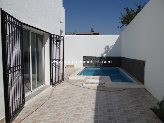 A louer pour les vacances une belle villa jumelée située sur la zone Craxi (La sortie nord d’hammamet). Elle est érigée sur deux niveaux et elle offre un salon avec un coin salle à manger, une cuisine moderne, trois chambres à coucher, une salle de bain et deux salles d'eau.