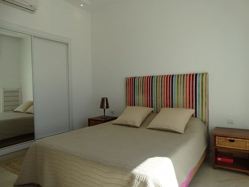Quant à l'étage il y'a une suite avec un balcon, une deuxième suite parentale avec une grande salle de bain et une belle terrasse aménagée avec un escalier privé donnant sur la piscine et le jardin, cette terrasse sous forme d'un solarium, est un chef-d’oeuvre, bénéficiant d’une vue dégagée sur toute la ville d’hammamet avec sa plage et les environs avec une vue panoramique sur les collines et les vergers.