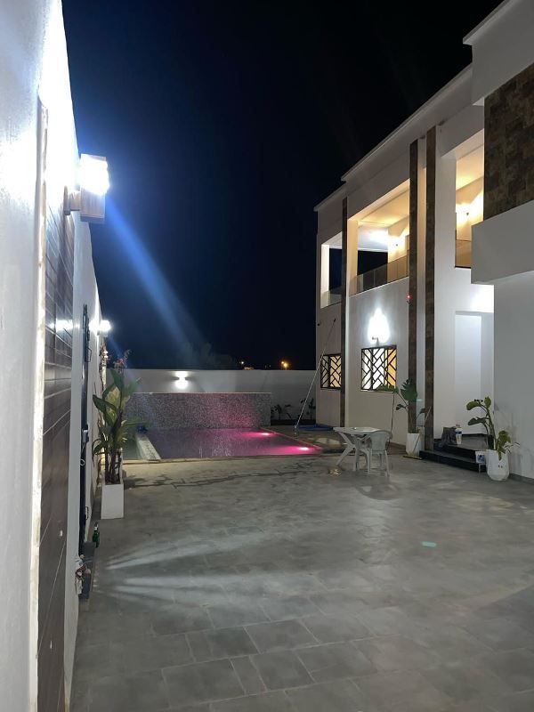 Le rez de chaussée se compose d’un salon, une cuisine moderne bien équipée, une chambre à coucher et salle d’eau d’invités.