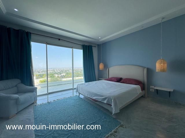 A louer pour des courtes durées, une luxueuse demeure d’haut standing située sur les hauteurs d’Hammamet et ayant une superbe vue dégagée sur la verdure et la mer.