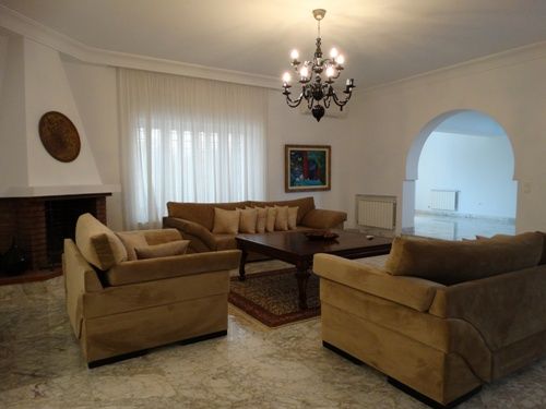 Au rez chaussée: deux spacieux salons dont une avec cheminée, un séjour, une cuisine aménagée bien équipée, trois chambres à coucher, une salle d'eau et une salle de bain.